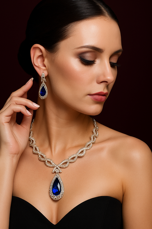 Dark Blue Gem Necklace And Earring Set